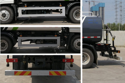 1.该车可选装两种罐体,罐体总容量均为9.7立方米, 罐体有效容积均为9.30立方米;罐体1外形尺寸(长轴锥讨嶙长)为: 2400?420?300 (mm),罐体2外形尺寸(长轴锥讨嶙长)为:2250?300?300(mm)。2.该车可选装3种侧防护装置,侧防护装置材料均为Q355,与车辆均采用螺栓连接;该车可选装2种后防护装置,后防护装置1材料为QStE700TM,与车辆采用螺栓连接,截面尺寸为:160?20(mm),离地高度为:480mm;后防护装置2材料为QStE700TM,与车辆采用螺栓连接,截面尺寸为:120?0(mm),离地高度为:455mm。3.ABS型号/厂家:ABS-E 4S/4M/采埃孚商用车系统(青岛)有限公司;CM4XL-4S/4M/广州瑞立科密汽车电子股份有限公司。4.可选装不同外观前遥控洒水炮及支架、不同外观前鸭嘴、气控水阀、不同结构自吸、中排冲装置、高压喷水系统、不同外观卷管盘、不同后洒及水阀安装位置、自洁水枪、加压出水口、不同外观球阀、不同外观右侧侧喷、不同外观后洒水炮及接口、不同外观罐上喷洒装置、不同外观后上喷雾、前对冲、中对冲、后对冲、气控箱、新结构后管路;可选装新结构后平台、新结构护栏、新结构爬梯、罐体裙边结构、后平台抱管装置、新结构爬梯、工具箱及位置、备胎安装位置及管路、加强型罐体、轻量化罐体、不同高度顶部护栏、罐体顶部护栏数量、新结构罐口、不同外观罐体封头、不同外观爬梯形式及位置、罐体后扶手、罐体后侧球阀、罐后小拉手、方形管箱、圆形管箱、罐顶小拉手、新结构轮罩、左侧加水口;可选装倒车监控、后箭头灯位置、后箭头灯支架、新结构后箭头灯。5、随底盘选装后视镜、驾驶室前面罩、遮阳罩、脚踏结构、脚踏结构2、不同外观进气系统、后视镜下支座结构、后组合灯、后组合灯护罩。6.该车型可取消电器盒、前鸭嘴、对冲、后洒、后箭头灯、后上喷雾、侧喷、后洒水炮接水口、后洒水炮、倒车监控、滤网三通。7.选装后洒外观和后洒安装位置时离去角为9?装有前鸭嘴时接近角为15? 装有前对冲时接近角为13?无前置作业装置时接近角为18?选装前遥控洒水炮时接近角为13?前伸为570mm,车长为8020mm。8、当选装不同高度顶部护栏时对应车高为2865mm,当选装罐体后扶手时对应车高为3030mm。9.罐体配置/整备质量(kg)对应关系为:标准型罐体/6380;加强型罐体/6500;轻量化罐体/6250。10.该车装有水泵、喷嘴专用装置,用于喷洒路面、对路面进行除尘和降温。 |