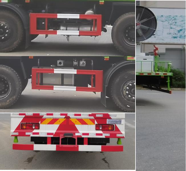 | 选装驾驶室。罐体总容量18.8立方米,有效容积17.98立方米;罐体外形尺寸(长度壮ぶ嶙短轴)(mm):5500?500?730。侧防护采用Q235,螺栓连接.后防护采用Q235,焊接连接。后防护截面高度尺寸120mm,截面宽度尺寸50mm,下边缘离地高度500mm。ABS的型号及生产厂家:3631010-C2000/东科克诺尔商用车制动系统(十堰)有限公司,J ABS/焦作博瑞克控制技术有限公司。该车用途为抑尘降霾,主要装置为水罐及喷雾装置。车辆长/轴距/前悬/后悬对应关系为:11150/1850+3200+1350/1250/3500, 11150/1850+3200+1350/1500/3250, 11150/1850+3200+1350/1410/3340, 11150/2100+3200+1350/1250/3250, 11150/2100+3200+1350/1500/3000, 11150/2100+3200+1350/1410/3090.随底盘选装尿素罐,电瓶及储气罐等附件安装位置。 |