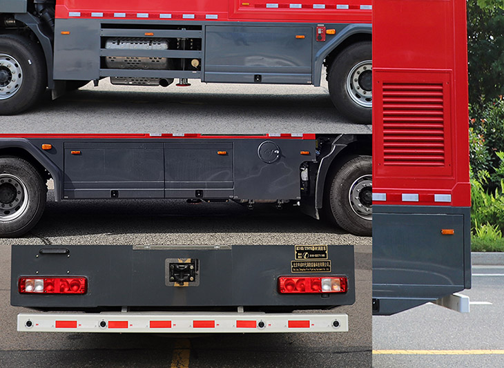 | 水罐容积:1.500立方米,水罐尺寸:1740?00?800mm,侧防护装置材料:Q235A,由平面与横杆组成,横杆截面高度:100mm,横杆间距:160mm,与车辆连接方式:螺栓连接。后防护装置材料:Q235A,截面尺寸(宽赘?:80?20mm,与车辆连接方式:螺栓连接,后防护离地高度:490mm,后伸:95mm。ABS生产企业为东科克诺尔商用车制动系统(十堰)有限公司,型号为ABS/ASR-24V-4S/4M。主要专用装置有扩展舱及各类消防器材。 |