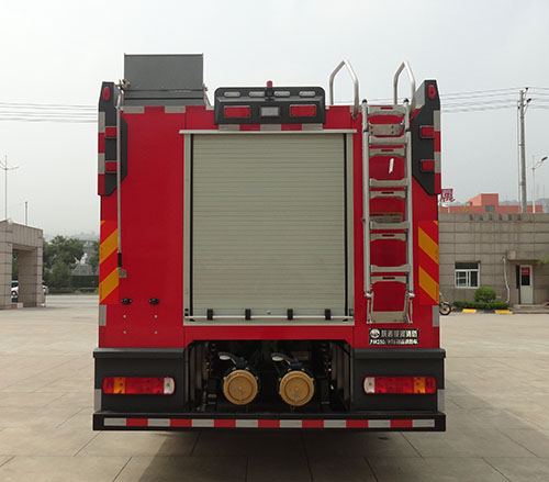| 罐体总容积为24.510立方米,水罐容积:20.000立方米,水罐尺寸:6190?390?400mm,泡沫液罐容积:4.510立方米,泡沫液罐尺寸:1395?390?400mm。整体式侧防护结构,后防护装置材料:Q235A,截面尺寸:120?0mm,与车辆连接方式:螺栓连接,后防护离地高度:490mm,ABS生产企业为威伯科(上海)管理有限公司,型号为4460046300。主要专用装置有消防泵、消防炮。 |