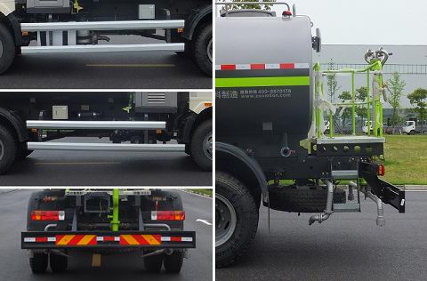 该车采用底盘4500mm轴距,10.00R20 18PR轮胎.该车型工作装置有4种配置:A(车前无工作装置,基本型),B(装气控喷水架),C(装液压喷水架),D(装护栏清洗);配置A时,整车长8010mm;配置B时,整车长8825mm,前伸815mm;配置C时,整车长8940mm,前伸930mm;配置D时,整车长8855mm,前伸845mm;罐体有效容积9.87立方米,罐体外形尺寸(长轴锥讨嶙长度)(mm):2400?420?600,侧面防护装置材料材质为铝合金,连接方式为螺栓连接,后防护装置的材料材质为Q235A,连接方式为螺栓连接;后部防护装置的断面尺寸为240?0mm,离地高度为540mm;可选装鸭嘴,对冲,后部保洁型,后部浇灌型,上绿化浇灌,箭头灯,自吸,卷盘,小型喷洒系统,自动水炮,高压清洗系统等装置,该系列选装对于整车尺寸,重量变化可忽略不计;随底盘装ABS.ABS系统生产厂家:长春科密汽车制动有限公司,型号:CM4XL. |