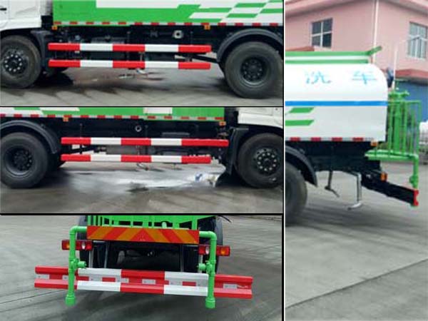 随底盘选装驾驶室前脸扰流罩、前雾灯、卧铺侧窗装饰板;安装有卫星定位功能的行驶记录仪; ABS型号:3631010-C2000、4460046440,生产厂家:东科克诺尔商用车制动系统(十堰)有限公司、威伯科汽车控制系统(中国)有限公司;仅选用4500mm轴距;该车型有三种配置:1(车头无选装,此时总长8280mm,接近角15?、2(选装前部喷水架,此时总长9120mm,前伸840mm,接近角10?、3(选装护栏清洗,此时总长8980mm,前伸700mm,接近角10?,选装引起整备质量变化在允许误差范围内;罐体有效容积:9.7立方米,罐体外形尺寸(mm)(长轴锥讨嶙长度):2350?370?500;侧防护材质:Q235A钢板;后防护材质:Q345B钢板;侧、后防护连接方式:螺栓连接;后防护断面尺寸/离地高:230?0?/460(mm)。 |