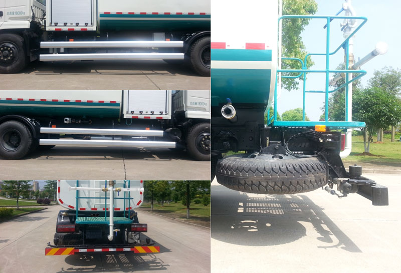 选用5100mm轴距底盘,随底盘选装驾驶室前脸以及保险杠,装有ABS,ABS的型号可以为ABS-E 4S/4M,生产厂为威伯科汽车控制系统(中国)有限公司,也可以为3631010-C2000,生产厂为东科克诺尔商用车制动系统(十堰)有限公司.该车型工作装置有4种配置:A(前喷架),B(前喷架+升降平台),C(护栏清洗装置),D(护栏清洗装置+升降平台);各配置外形尺寸长/高/前伸/额定载质量/整备质量对应关系:配置A:10050/3000/1200/9390/8415,罐体外形尺寸(长度壮ぶ嶙短轴)(mm):4080?280?470,有效容积:9.859立方米;配置B:10050/3250/1200/8880/8925,罐体外形尺寸(长度壮ぶ嶙短轴)(mm):3850?280?470,有效容积:9.324立方米;配置C:10150/3000/1300/9390/8415,罐体外形尺寸(长度壮ぶ嶙短轴)(mm):4080?280?470,有效容积:9.859立方米;配置D:10150/3250/1300/8880/8925,罐体外形尺寸(长度壮ぶ嶙短轴)(mm):3850?280?470,有效容积:9.324立方米;运输介质:水,密度1000千克/立方米;侧面防护装置的材料为铝合金或Q235A,连接方式为螺栓连接;后防护装置材料为Q235A,连接方式为螺栓连接,断面尺寸为140?0mm,离地高度为490mm,仅选用10.00-20 18PR,10.00R20 18PR,11.00-20 16PR,11.00R20 18PR型轮胎;可选装前冲、鸭嘴、后箭头指示灯、后部上、下喷雾、左、右花洒、自吸和自吸管等装置;专用装置由清洗装置、前喷装置、护栏清洗装置、升降平台及罐体等组成,专用功能为道路清洗、保洁、护栏清洗等作业;罐体外观颜色及文字喷涂位置可变化. |