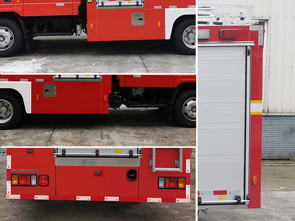 罐体总容积为3.455立方米,为一异型罐,前端尺寸:1230?00?280mm,后端尺寸:1490?300?280mm, 整体式侧后防护结构,后防护离地高度: 380mm。ABS及控制器型号为:APG3550500H1,生产厂家为:浙江亚太机电股份有限公司;.主要专用装置有消防泵、消防炮.选装泵房后翻门. |