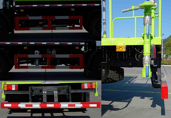 1.该车主要用于城乡园林绿化洒水等;主要专用装置为罐体和喷洒总成;罐体总容量7.46立方米,罐体有效容积7立方米,介质:丙酮水溶液,密度:950千克/立方米;罐体外形尺寸(mm)长壮ぶ嶙短轴:4000?030?300.2.防护材料材质:侧防护和后防护材料材质都为Q235;连接方式:侧防护和后防护连接方式都为焊接;后防护断面尺寸:60mm?20mm;后防护离地高度:470mm.3.随底盘选装排半驾驶室,选装侧风窗.4.ABS系统生产厂家:东科克诺尔商用车制动系统(十堰)有限公司,型号:ABS/ASR-24V-4S/4M.5.该车可选装直接供电的ETC车载装置.6.选装无备胎.7.驾驶室准乘人数和额定载质量一一对应.8.选装后平台、雾炮样式,水枪位置. |