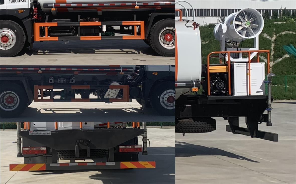 该车主要用于城乡道路和园林的绿化喷洒作业,主要专用装置为罐体和喷洒总成.罐体外形尺寸(长壮ぶ嶙短轴)(mm):4950?280?480;罐体总容量:11.67立方米,罐体有效容积11.12立方米.介质:丙酮水溶液,密度:950kg/立方米.侧、后防护材料均为Q235,均为螺栓连接,后防护截面尺寸(mm)140?0,下边缘离地高450mm.ABS系统生产厂家,型号 :焦作博瑞克控制技术有限公司,J ABS;襄阳东风隆诚机械有限责任公司,ABS/ASR-24V-4S/4M.随底盘选装驾驶室;仅选用底盘4500mm轴距;专用装置小平台,后置雾炮,上绿化浇灌装置;上喷雾装置,下喷雾装置,前置全自动水炮,后作业指示灯,低压卷盘总成,两侧吸水管为选装件;选装打药系统,选装高压清洗系统;选装前置全自动水炮时前伸为650mm。 |