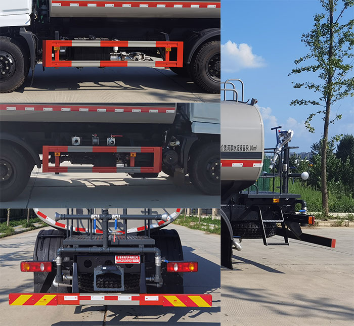 1、该车专用主要装置为罐体和泵,主要用于城乡园林绿化洒水,喷药等,罐体外形尺寸(长卓碜高)(mm):4200?350?450,罐体总容量10立方米,有效容积9.6立方米。2、侧/后防护材料:Q235A碳钢,侧防护与副梁采用焊接连接,后防护与车架采用焊接加螺栓连接,后防护截面尺寸:120?0mm,下边缘离地高:450mm。3、仅采用3950mm轴距底盘,整车长/前悬/后悬对应关系为(mm):7900/1475/2475,7900/1515/2435,7900/1430/2520,7650/1475/2225,7650/1515/2185,7650/1430/2270,7650/1320/2380,ABS生产厂家;东科克诺尔商用车制动系统(十堰)有限公司,浙江万安科技股份有限公司,型号:3631010-C2000,VIE ABS-Ⅱ。4、随底盘选装驾驶室,选装车辆电瓶、后处理器、尿素罐、进出水口等附件位置及样式,选装车辆后部带喷雾机结构及喷雾机样式,选装车辆后部平台结构,选装车辆后部带箭头灯结构。 |