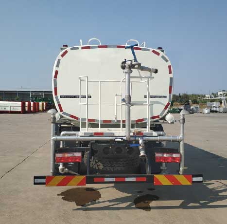 该车装有水罐,水路系统,清洗工作装置,作业平台,控制系统,用于清洗作业;介质名称:丙酮水溶液,密度:950千克/立方米.罐体总容积12.79立方米,罐体有效容积10.9立方米.罐体外形尺寸(长度壮ぶ嶙短轴)(mm);4960?230?460.后防护材料是Q235A,连接方式为螺栓连接,截面尺寸65?50,距地高度475;侧防护材料是Q235A钢板,连接方式为螺栓连接,ABS型号为446004XXX0,生产厂家为威伯科汽车控制系统(中国)有限公司,安装带卫星定位功能的行驶记录仪.选装鸭嘴,对冲,前冲洗机构,前置自动水炮,绿化浇灌口,卷盘,气动后洒,后花洒,后万向鸭嘴,高位花洒,箭头灯,上喷雾,选装罐体两侧无边筒.重量变化在公差范围之内.该车仅选装4700轴距,选装前置自动水炮时整车长9180mm,前伸770mm;选装前冲洗机构,对应整车长:9430mm,前伸1020mm,选装另一种电子水炮时整车长9145mm,前伸735mm.所有尺寸单位为:mm.选装后部线束走向.选装侧面抽排筒固定支架样式,选装雾炮样式 |