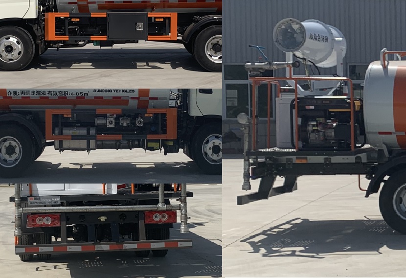 该车主要用于城乡道路和园林的绿化喷洒作业,主要专用装置为罐体和喷洒总成.罐体外形尺寸(长壮ぶ嶙短轴)(mm):3200?650?100;罐体总容量:4.25立方米,罐体有效容积4.05立方米.介质:丙酮水溶液,密度:950kg/立方米.侧、后防护材料均为Q235,均为螺栓连接,后防护截面尺寸(mm)100?0,下边缘离地高370mm.ABS系统型号:ABS-E;生产企业:威伯科汽车控制系统(中国)有限公司.ABS系统型号:ABS-VI.E;生产企业:广州瑞立科密汽车电子股份有限公司.随底盘选装驾驶室;专用装置小平台,后置雾炮,上绿化浇灌装置;上喷雾装置,下喷雾装置,前置全自动水炮,后作业指示灯,低压卷盘总成,两侧吸水管为选装件;仅选用底盘3360mm轴距;选装前置全自动水炮时前伸为500mm。 |