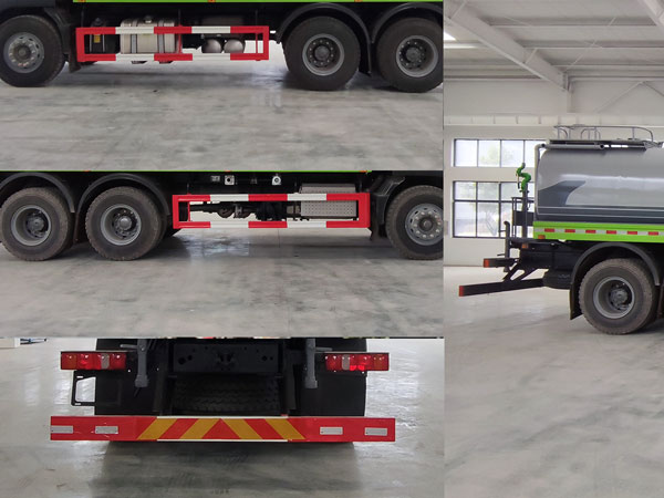 1、该车仅选用4300+1350mm轴距底盘改装..2、罐体总容量为15.23立方米,罐体有效容积为14.5立方米,罐体尺寸(长壮ぶ嶙短轴)对应关系为(mm):6200?300?550。3、防护材料:Q235B碳钢,连接方式:左右侧面防护与后下部防护均采用螺栓连接,后部防护断面尺寸(mm):150?0,后部防护离地高度(mm):460。4、ABS型号/生产厂家:4460046300/威伯科(上海)管理有限公司。5、专用装置:罐体,主要用于路面洒水及园林绿化。6、选装带喷雾装置大平台。7、选装底盘附件安装位置。8、选装出水口位置。9.选装限速装置,限速89km/h。 |