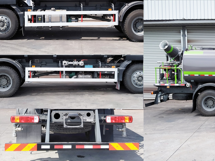1、该车用于路面洒水及园林绿化,主要专用装置为喷洒总成。仅选用轴距4500mm底盘改装。罐体总容量:10.79立方米,罐体有效容积:10.28立方米。罐体外形尺寸(长壮ぶ嶙短轴)(mm):4600?400?420。2、侧护材料为铝合金、后防护材料为Q235,均采用螺栓连接,后防护截面尺寸130?0mm,下边缘离地高460mm。3、随底盘选装驾驶室外观,选装保险杠,选装翼子板,选装上车踏步,选装观察窗,选装铝合金钢圈,选装铝合金轮毂。选装驾驶室前部无自动水炮,选装后部不带雾炮结构。随底盘选装限速装置,限速89km/h。ABS系统控制器生产企业/型号为威伯科(上海)管理有限公司/4460046300。整车外形尺寸长/前伸量对应关系为(mm):8360/0,8940/580。 |