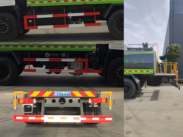 1.整车外形长与前悬(mm)对应关系:10000/1400,10100/1500;2.专用功能及装置:该车主要用于城乡道路和园林绿化洒水;主要装置为罐体、洒水泵、喷洒装置;3.罐体总容量:15.14立方米,有效容积:14.42立方米,介质:丙酮水溶液.罐体外形尺寸(长卓碜高)(mm)为: 6300?300?500;4.侧、后防护均采用Q235材质,侧防护与罐体副梁螺栓连接,后防护与后部车架采用螺栓连接,后防护截面尺寸:150?0mm,下边缘离地高480mm;5.选装罐体外观和选装雾炮;6.ABS系统控制器型号/厂家:3631010-C2000/东科克诺尔商用车制动系统(十堰)有限公司.J ABS/焦作博瑞克控制技术有限公司.随底盘选装驾驶室及底盘附件储气筒尿素罐安装位置.选装底盘后处理器外观样式,选装罐体外观,选装气动装置。 |
