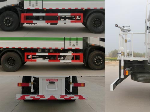 随底盘选装驾驶室;选装后部安装雾炮喷洒装置。罐体总容量10.5立方米,罐体有效容积10立方米,罐体尺寸为(长壮ぶ嶙短轴)(毫米):4050?400?450,3850?400?550, 4250?400?450。ABS型号/生产厂家:3631010-C2000/东科克诺尔商用车制动系统(十堰)有限公司,ABS 8/东科克诺尔商用车制动系统(十堰)有限公司, 4460046450/威伯科汽车控制系统(中国)有限公司,4460046450/采埃孚商用车系统(青岛)有限公司,J ABS/焦作博瑞克控制技术有限公司。侧面防护采用冷弯型钢/Q235-B,螺栓连接;后防护采用冷弯型钢/Q235-B,螺栓连接。后防护截面高度尺寸150mm, 截面宽度尺寸60mm,下边缘离地高度500mm。该车用于园林绿化,主要专用装置为罐体和喷洒装置。车长/轴距一一对应。可选装ETC车载装置。 |
