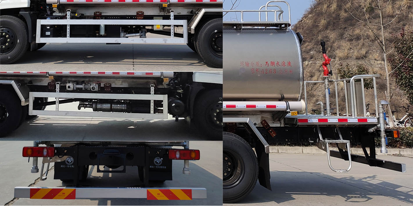 该车主要装置为水罐及水泵等,用于城市绿化浇灌,洒水等作业;运输介质为丙酮水溶液,介质密度:950千克/立方米,罐体总容量:12.63立方米,有效容积:12.03立方米,罐体外形尺寸(长壮ぶ嶙短轴)(mm):5000?350?540.侧防护材质为铝合金,采用螺栓连接加焊接连接,后防护材质为铝合金,采用螺栓连接,截面宽赘呶?0mm?20mm,离地高度为490mm;整车外形长/轴距/前悬/后悬/前伸对应关系为(mm):8800/4500/1400/2900/0,8800/4700/1400/2700/0,8800/4500/1430/2870/0,8800/4700/1430/2670/0,9400/4500/1400/2900/600,9400/4700/1400/2700/600,9400/4500/1430/2870/600,9400/4700/1430/2670/600.ABS型号/生产厂家:3631010-C2000/东科克诺尔商用车制动系统(十堰)有限公司,ABS 8/东科克诺尔商用车制动系统(十堰)有限公司, 4460046450/威伯科汽车控制系统(中国)有限公司,J ABS/焦作博瑞克控制技术有限公司.该车型可选装ETC车载装置.选装前置电子雾炮.随底盘选装驾驶室.选装限速装置,限速89. |