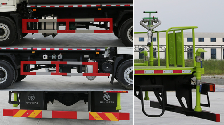 1、该车专用装置有水罐及水泵等喷洒装置,用于城市绿化浇灌,洒水等作业。2、运输介质:丙酮水溶液,密度:950千克/立方米,罐体总容量:11.38立方米,有效容积:10.84立方米。3、该罐体为方圆罐,罐体外形尺寸4800?350?450。4、该车防护材料材质均为Q235,侧防护连接方式为螺栓加焊接连接,后防护连接方式为螺栓连接,后防护离地高465mm,断面尺寸120?0mm。5、ABS系统生产厂家:西安正昌电子股份有限公司,型号:ZQFB-V。6、选装前鸭嘴、前对冲、后对冲;选装罐体涂装外观、软管箱样式;选装顶部喷雾装置、前置电子雾炮样式、顶部平台样式、顶部灌口位置及其防护、顶部绿化浇灌样式;选装右置进出水口、右置无压力上水口;选装罐体左右支撑样式及数量;选装液位汁;选装装水炮样式;选装卷盘总成、工具箱;选装雾炮尾部喷雾装置;选装不同发动机底盘部件位置;选装雾炮及安装位置、指示灯位置、水枪安装位置、后平台样式;选装前置电子雾炮时前伸为600mm。随底盘选装驾驶室前脸,前部灯具,前围,前保险杠外观,侧围,后视镜;选装驾驶室两侧喷涂"X6"字样及图案;选装门下装饰;选装空滤右置;选装视镜外观。 |