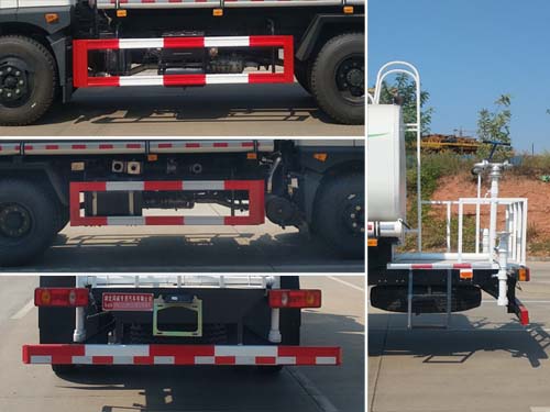 1、专用装置:罐体及水泵,主要用于路面洒水及园林绿化。该车仅选用3950mm轴距底盘。介质为丙酮水溶液,密度950千克/立方米.罐体总容量11立方米,罐体有效容积10.5立方米。罐体外形尺寸(长壮ぶ嶙短轴)(mm)对应关系为: 4200?350?550。整车长(mm)/前悬(mm)/后悬(mm)对应关系为:7600/1250/2400,7600/1450/2200,7750/1250/2550,7950/1450/2550,7600/1310/2340,7750/1310/2490,7810/1310/2550。2、侧,后防护装置材料均为Q235,侧防护螺栓连接,后防护焊接,截面尺寸为120?0mm,离地高度为480mm。3、随底盘选装驾驶室,选装仅外饰件不同的同系列驾驶室,选装导流罩和遮阳板,选装后部喷洒装置。ABS型号及生产厂家为:3631010-C2000/东科克诺尔商用车制动系统(十堰)有限公司,J ABS/焦作博瑞克控制技术有限公司。 |