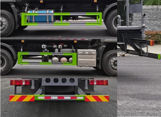 随底盘选装驾驶室。罐体总容量14.98立方米,有效容积为14.26立方米,罐体尺寸(长壮ぶ嶙短轴)(mm)为:6200?350?500。侧防护材料Q235,螺栓连接。后防护采用Q235,焊接连接,后防护截面高度尺寸120mm,截面宽度尺寸50mm,离地高度500mm。ABS型号:446 004 6300或EBS3;ABS生产企业:威伯科汽车控制系统(中国)有限公司;选装限速装置;限速装置限速(km/h):89;整车长/前悬/轴距/后悬对应关系:9850/1550/4325+1350/2625,9850/1550/4300+1400/2600,9850/1550/4600+1350/2350,10050/1550/4325+1350/2825,10050/1550/4300+1400/2800,10050/1550/4600+1350/2550,10200/1550/4325+1350/2975,10200/1550/4300+1400/2950,10200/1550/4600+1350/2700;专用装置:罐体,喷洒装置;主要用于路面洒水及园林绿化作业。4575+1400轴距对应关系:9850/1550/2325,10050/1550/2525,10200/1550/2675.随底盘选装驾驶室样式,随底盘选装车辆左右两侧尿素罐,气罐等装置安装位置。 |