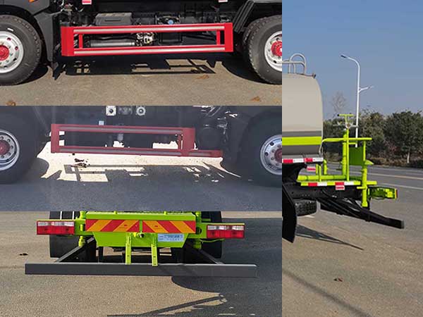 随底盘选装驾驶室.选装后高位花洒,选装方圆管道箱,选装后雾炮装置,选装后弧形喷雾.选装LED箭头指示灯,选装后平台式样,选装喷枪安装位置,选装前部电子炮,前伸为620mm,对应车长为8390mm和8170mm;仅采用3950mm轴距底盘;罐体总容量9.83立方米;罐体有效容积9.36立方米;罐体外形尺寸(长壮ぶ嶙短轴)(mm)4200?300?500.侧防护采用Q235,焊接加螺栓连接。后防护采用Q235,焊接加螺栓连接。后防护截面尺寸(mm):120?0,后防护离地高度450mm。ABS系统生产厂家,型号 :焦作博瑞克控制技术有限公司,J ABS;襄阳东风隆诚机械有限责任公司,ABS/ASR-24V-4S/4M.专用装置主要是水罐和喷洒装置,用于园林绿化喷洒作业。 |