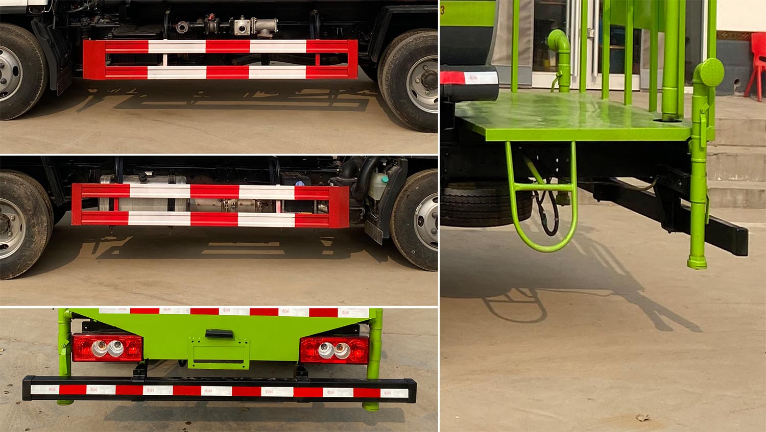 该车主要用于园林绿化及洒水,主要专用装置为罐体及喷洒总成.罐体总容量:4.21立方米,有效容积:4.01立方米,介质:丙酮水溶液,密度:950千克/立方米;罐体外形尺寸(长壮ぶ嶙短轴)为(mm):3400?600?050.随底盘选装驾驶室;选装喷雾装置.侧,后防护装置材料为Q235.侧、后防护连接方式均为焊接连接;后部防护断面尺寸(宽赘?60?20(mm),后部防护离地高度(mm):450.ABS系统型号:ABS-E;生产企业:威伯科汽车控制系统(中国)有限公司.ABS系统型号:ABS-VI.E;生产企业:广州瑞立科密汽车电子股份有限公司. |