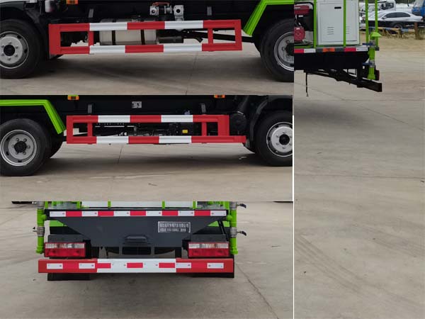 选装后高位花洒,选装方圆管道,选装后雾炮装置,选装后弧形喷雾.选装LED箭头指示灯,选装喷枪安装位置。罐体总容量7.82立方米,有效容积7.45立方米。罐体外形尺寸(长壮ぶ嶙短轴)(mm)为:4200?000?350,侧防护采用Q235,螺栓连接。后防护采用Q235,焊接连接。后防护截面高度尺寸120mm,截面宽度尺寸50mm,下边缘离地高度500mm。采用3800轴距底盘,车辆长与后悬一一对应.ABS系统控制器型号/生产厂家:VIE ABS-Ⅱ/浙江万安科技股份有限公司。专用装置为罐体,水泵等,主要用于绿化喷洒作业。选装外观样式及后平台样式。 |