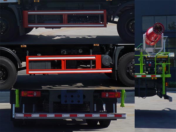 ABS型号:3631010-C2000,J ABS;ABS生产企业:东科克诺尔商用车制动系统(十堰)有限公司,焦作博瑞克控制技术有限公司;选装描述:选装后平台结构及喷洒装置及罐体侧部管道结构.选装前部喷洒装置(驾驶室前部不安装喷洒装置对应外形长为:7800(mm)).随底盘选装驾驶室.选装ETC车载装置.采用3950(mm)轴距底盘.安装带卫星定位功能的行驶记录仪;所用材料材质、连接方式以及后部防护装置的主要尺寸参数(断面尺寸和离地高度):防护材料:Q235,连接方式:左右侧面及后下部防护均采用焊接连接,后部防护装置断面尺寸(宽赘?50?40(mm),后部防护离地高度(mm):500(mm);罐体总容量10.33立方米,罐体有效容积9.84立方米,罐体外形尺寸(mm):(4100?250?500),(4200?250?500);专用功能及装置:该车主要用于城乡园林绿化洒水,喷药等;主要装置为水罐及喷洒装置;前伸尺寸:500(mm); |