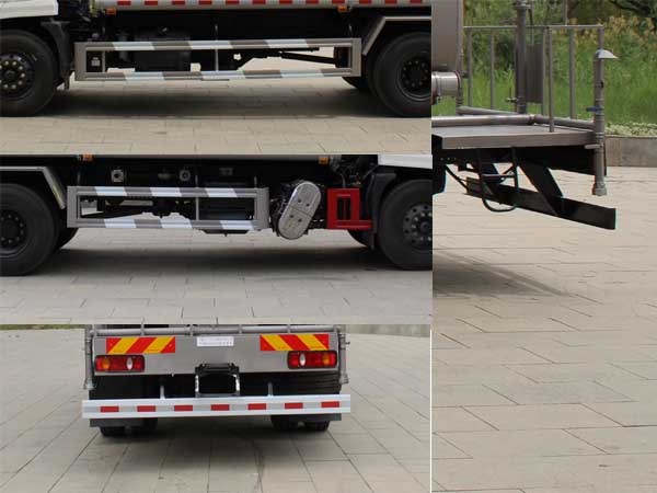 随底盘选装驾驶室。仅采用4500mm,4700mm轴距底盘;罐体总容量11.6立方米;罐体有效容积11.05立方米,运输介质:丙酮水溶液,密度:950千克/立方米;罐体外形尺寸(长度壮ぶ嶙短轴)(mm):5000?300?450。整车长/轴距对应关系(mm):8800/4700,8600/4500,8500/4700,8300/4500。选装描述:选装后高位喷洒,选装方圆管道箱,选装后雾炮装置,选装后弧形喷雾.选装LED箭头指示灯,选装后平台式样,选装喷枪安装位置。侧防护采用Q235,螺栓连接。后防护采用Q235,焊接连接。后防护截面高度尺寸140mm,截面宽度尺寸50mm,下边缘离地高度480mm。ABS型号/生产厂家:3631010-C2000/东科克诺尔商用车制动系统(十堰)有限公司,ABS 8/东科克诺尔商用车制动系统(十堰)有限公司, 4460046450/威伯科汽车控制系统(中国)有限公司。专用装置主要是罐体和喷洒系统,用于园林绿化喷洒作业。额定载质量和整备质量及驾驶室准乘人数一一对应。 |