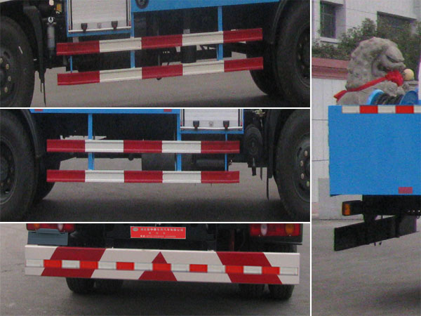 选装侧部外形结构及正后结构.选装侧部外形结构及正后结构时引起整备质量参数的变化在3%范围内.驾驶室前脸扰流罩为选装件.罐体有效容积:8.61立方米,运输介质: 水,密度:1.0吨/立方米,当轴距为4700(mm)时,罐体外形尺寸(长壮ぶ嶙短轴)(mm)5000?150?350(罐体前部1200(mm)用于安装高压泵).当轴距为4500(mm)时,罐体外形尺寸(长壮ぶ嶙短轴)(mm)4800?180?400(罐体前部1200(mm)用于安装高压泵).侧防护材料为Q235,联接方式为连接支架固焊在付车架大梁上.后防护材料为Q235,连接方式:用结构连接件固焊在主车后端,后部防护装置断面尺寸(宽赘?60?00(mm),后部防护离地高度:450(mm).装有具有卫星定位的行车记录仪.ABS型号:3631010-C2000,4460046440;生产厂家:东科克诺尔商用车制动系统(十堰)有限公司,威伯科汽车控制系统(中国)有限公司. |