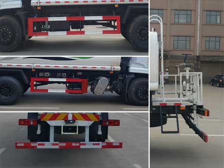 1、专用装置:罐体及水泵,主要用于路面洒水及园林绿化。该车仅选用4500mm和4700mm轴距底盘。介质为丙酮水溶液,密度950千克/立方米.罐体总容量11.88立方米,罐体有效容积11.32立方米。罐体外形尺寸(长壮ぶ嶙短轴)(mm)对应关系为: 5000?300?500。整车长(mm)/前悬(mm)/轴距(mm)/后悬(mm)对应关系为:8350/1475/4500/2375,8350/1515/4500/2335,8350/1475/4700/2175,8350/1515/4700/2135,8850/1475/4500/2875,8850/1515/4500/2835,8850/1475/4700/2675,8850/1515/4700/2635。2、侧,后防护装置材料均为Q235,侧防护螺栓连接,后防护焊接,截面尺寸为120?0mm,离地高度为480mm。3、选装驾驶室前脸局部造型变化,选装排气管样式,选装遮阳板,选装不同外观,选装后部喷洒装置。安装具有卫星定位功能的行驶记录仪,ABS生产厂家;东科克诺尔商用车制动系统(十堰)有限公司, 浙江万安科技股份有限公司,型号:3631010-C2000, VIE ABS-Ⅱ。 |