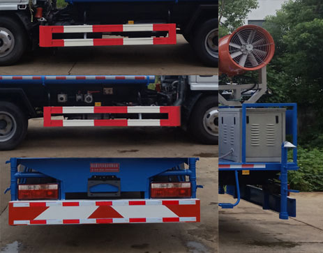 随底盘选装驾驶室;选装喷雾机样式,罐体总容量3.85立方米,罐体有效容积3.67立方米;罐体外形尺寸(长壮ぶ嶙短轴)(mm): 3000?600?100;仅采用3308mm轴距;侧防护材料Q235,螺栓连接;后防护材料Q235,焊接连接,后防护截面高度尺寸220mm,截面宽度尺寸50mm,下边缘离地高度400mm;ABS型号/厂家:ABS/ASR-12V-4S/4M/襄阳东风隆诚机械有限责任公司;主要专用装置罐体和风机,用于园林绿化洒水. |