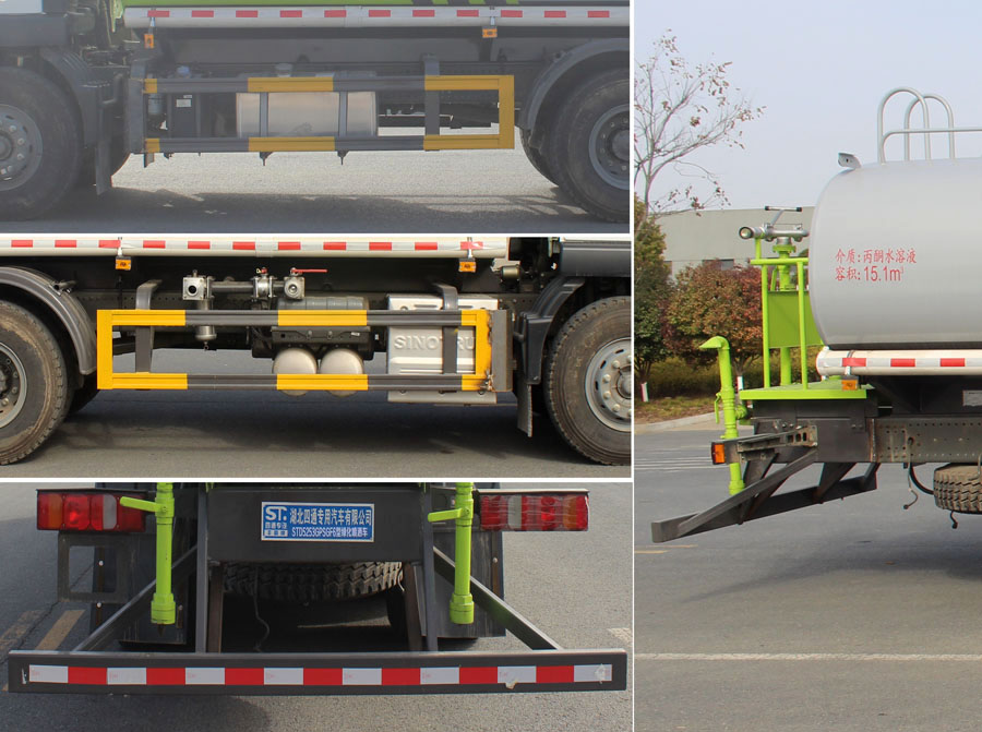 1、该车主要用于园林绿化喷洒作业,主要装置为水罐及泵.罐体有效容积15.1立方米,介质:丙酮水溶液,密度:950千克/立方米.罐体外形尺寸(长壮ぶ嶙短轴)(mm):6600?370?440,6300?380?500;2、侧防护材料材质为Q235,连接方式为螺栓连接;后防护材料材质为Q235,连接方式为焊接连接,后部防护装置断面尺寸(宽赘?为60mm?20mm,后部防护下边缘离地高度为480mm;3、ABS系统控制器生产企业/型号为威伯科(上海)管理有限公司/4460046300.4、采用4300+1350轴距,选装后高位花洒,选装方圆管道箱,选装后雾炮装置,选装后弧形喷雾.选装LED箭头指示灯,选装后平台式样,选装喷枪安装位置.随底盘选装驾驶室,选装前部灯具. |
