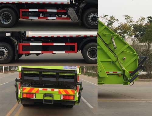 1、该车主要专用装置由箱体、压缩系统组成,用于垃圾的收集与清运。该车可选装方形或弧形箱体,选装全密封盖装置,选装后部工作装置。选装工作装置时,外形长(mm)/前悬(mm)/后悬(mm)/后伸(mm)/整备质量(kg)对应关系:①无上料装置:10030/1480/2850/0/15300,10030/1500/2830/0/15300;②全密封斗装,摆臂装置:10230/1480/2850/200/15750,10230/1500/2830/200/15750;③翻桶装置,半密封斗装置:10430/1480/2850/400/15750,10430/1500/2830/400/15750。仅采用轴距( mm)4350+1350。2、侧防护采用冷弯型钢/Q235,螺栓连接;后防护由专用装置替代,下边缘离地高500mm。3、随底盘选装驾驶室前角扰流板;选装驾驶室前面罩、前保险杠及前部灯具和后视镜,选装驾驶室顶部中间三个装饰灯,选装前雾灯,驾驶室侧窗选装树脂装饰板。安装带有卫星定位功能的行驶记录仪。ABS型号/生产厂家:3631010-C2000/东科克诺尔商用车制动系统(十堰)有限公司,ABS 8/东科克诺尔商用车制动系统(十堰)有限公司,4460046450/威伯科汽车控制系统(中国)有限公司。发动机与油耗值(L/100km)对应关系:D6.7NS6B290/32,DDi75E350-60/31.7,DDi75E300-60/31.7。 |