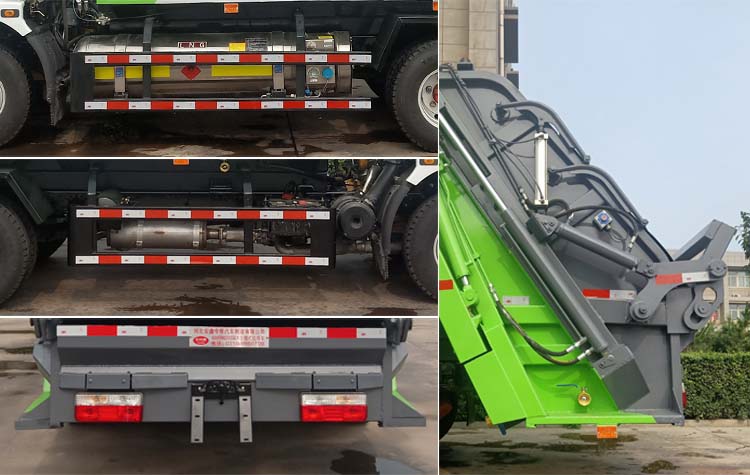 | 轴距仅选3308mm,车辆装有垃圾箱体、填装器、后部上料装置,用于收集、处理、转运垃圾作业;该车有三种配置,A(翻盖翻桶型);B(选装半密封斗装置);C(选装全密封斗装置);外形长(mm)/后悬(mm)/后伸(mm)/整备质量(kg)/额定载质量(kg)对应关系为:配置A为6720/1982/300/6800/2105,配置B为6820/2022/360/6800/2005,配置C为6720/1982/300/6900/2005;选装油箱安装位置;选装爬梯位置;侧防护装置同车架螺栓连接,材料为Q235;后防护装置由工作装置替代,工作装置离地高度450mm;ABS生产厂家/型号:襄阳东风隆诚机械有限责任公司/ABS/ASR-24V-4S/4M;随底盘选装前面罩,前保险杠,前组合灯具及前雾灯. 可选装ETC. |