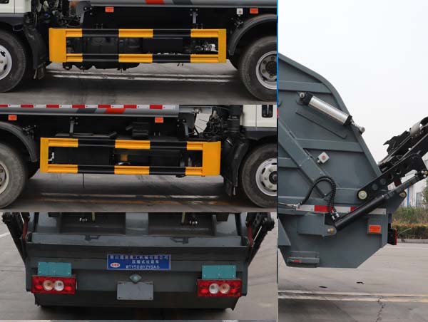 该车装备有垃圾箱体及垃圾装填器,用于将垃圾自行装入压缩、转运和卸料.该车选装两种装置,配置A:外形尺寸为6860?170?620(mm),后伸量为420mm,整备质量6560kg;配置B:外形尺寸为7140?050?450(mm),后伸量为700mm,整备质量6250kg.发动机WP3NQ160E61对应油耗为15.99L/100km;侧防护装置材料为Q235,侧防护装置与车架连接方式为螺栓连接,后下部防护为车辆部件代替,部件离地高度445mm;随底盘选装驾驶室样式.ABS控制方式为4S/4M,ABS型号为CM4XL-4S/4M,生产厂家为广州瑞立科密汽车电子股份有限公司. |