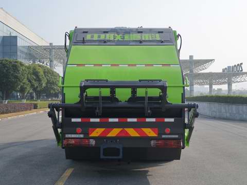 | 该车选用底盘4500mm轴距.该车通过垃圾箱,填装机构等装置,达到垃圾收集装填及推挤卸料的作业功能;该车有6种配置:A(无上料装置,基本型),B(选装翻桶装置),C(选装提斗装置),D(选装翻斗装置),E(选装翻盖翻桶型装置),F(选装翻铁桶提斗装置).配置A时,整备质量10750kg,额定载质量7120kg(准乘人数为2人)或额定载质量7055kg(准乘人数为3人);配置B时,整备质量10980kg,额定载质量6890kg(准乘人数为2人)或额定载质量6825kg(准乘人数为3人);配置C,D,E时,整备质量11150kg,额定载质量6720kg(准乘人数为2人)或额定载质量6655kg(准乘人数为3人);配置F时,整备质量11300kg,额定载质量6570kg(准乘人数为2人)或额定载质量6505kg(准乘人数为3人);配置A时,整车长8510mm,后悬2740mm;配置B时,整车长8870mm,后悬2740mm,后伸360mm;配置C时,整车长8600mm,后悬2830mm.配置D时,整车长8550mm,后悬2780mm;配置E时,整车长8690mm,后悬2700mm,后伸220mm;配置F时,整车长8870mm,后悬2700mm,后伸400mm;可选装四种后填装器盖,翻铁桶装置可选装无填装器盖,填装器下部外观,随底盘选装驾驶室外观,对尺寸,重量的变化可忽略不计;侧面防护装置的材料为铝合金,连接方式为螺栓连接;后防护装置由工作装置替代,工作装置离地高度为400mm;该车安装具有卫星定位功能的行驶记录仪.随底盘装有ABS,ABS系统型号/生产企业对应关系:ABS-E/威伯科汽车控制系统(中国)有限公司. |