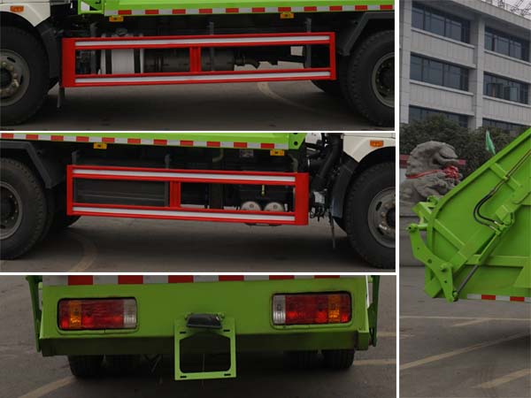 该车型主要用于各类垃圾清理及运输,主要装置为压缩厢体及填充器.选装后部垃圾盖及后部翻转机构结构, 选装后部垃圾盖及后部翻转机构结构时引起整备质量参数的变化在3%范围内.后部翻转机构为无翻转式,轴距/后伸/外形长对应关系为:4500(mm)/1250(mm)/8650(mm),4700(mm)/1250(mm)/8850(mm).后部翻转机构为摆臂式,轴距/后伸/外形长对应关系为:4500(mm)/1350(mm)/8750(mm),4700(mm)/1350(mm)/8950(mm).后部翻转机构为挂筒式及带斗式,轴距/后伸/外形长对应关系为:4500(mm)/1600(mm)/9000(mm),4700(mm)/1600(mm)/9200(mm).侧防护材料为Q235,连接方式为连接支架固焊在副车架大梁上.因后部结构需要无法安装,后防护专用装置代替,只测离地高为400(mm).选装前围和灯具,选装宽体保险杠,脚踏板.装有具有卫星定位的行车记录仪.ABS系统生产厂家:长春瑞立科密汽车电子有限公司,型号:CM4XL.采用CA4DK1-22E6,CA4DK1-18E6发动机,对应油耗值(L/100km)分别为:25.6,25.6. 仅采用4500(mm),4700(mm)轴距底盘. |