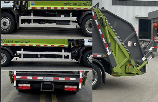 | 该车主要专用装置由箱体、压缩系统、提升机构组成,用于垃圾的收集与清运。该车可选装方形或弧形箱体,选装全密封盖装置,选装后部工作装置。选装工作装置时外形长/后伸/整备质量对应关系为(mm):①无上料装置:7020/-/6455;②全密封斗装置和摆臂装置:7270/250/6855;③翻桶装置和翻斗装置:7400/380/6855。仅采用底盘3800mm轴距改装。侧防护采用Q235B,螺栓连接;后防护由专用装置替代,下边缘离地高:410mm。随底盘选装驾驶室。ABS型号/厂家:ABS/ASR-12V-4S/4M/襄阳东风隆诚机械有限责任公司。发动机/油耗值L/100km对应关系分别:D4.0NS6B170/20.5,D4.0NS6B185/20.4,YCS04190-68/20.3,ZD30D16-6N/20.3,D25TCIF1/20.3,D40TCIF1/20.3,D45TCIF1/20.2,NV30-C6G/20.6,NV30-C6C/20.3,NV30-C6D/20.3,CY4SK161/20.4,CY4SK261/20.1,CY4SK361/20.4,YCY30165-60/20.3D4.0NS6B160/20.7,CY4BK261/21.1,YCY24140-60/21.1,Q28-130E60/20.9,H30-165E60/21.0,D4.0NS6B195/20.4。 |