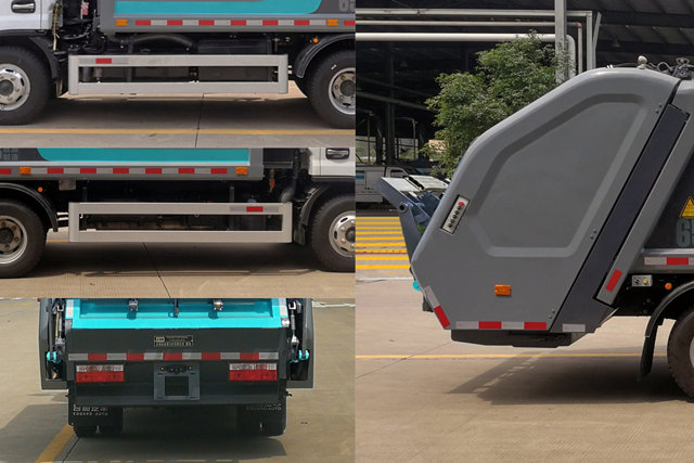 | 选用3308mm轴距底盘,装有ABS,ABS型号/厂家:ABS/ASR-12V-4S/4M/襄阳东风隆诚机械有限责任公司;侧面防护装置材质为铝合金,连接方式为螺栓连接,后部防护装置由专用装置代替,专用装置离地高度为430mm;发动机CA4DB1-11E6,CY4BK161,CY4BK461,D20TCIF1,YCY24140-60,ZD30D16-6N,Q28-130E60,Q23-115E60,CA4DB1-13E6对应的油耗申报值(L/100km)为16.2,16.2,16.2,16.2,16.2,16.2,15.9,14.5,16.2;该车后部有2种配置:A(翻桶上料装置),B(翻斗上料装置);配置A时,整车长6765mm,后悬2145mm,后伸257mm,整备质量为5580,载质量为1650;配置B时,整车长6645mm,后悬2070mm,后伸212mm,整备质量为5670,载质量为1560,专用装置由垃圾箱、填料器、上料机构等组成,专用功能:将垃圾自行装入压实,转运和卸料作业.随底盘选装驾驶室外观,该车型可选装ETC车载装置. |