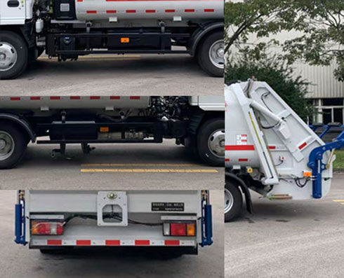 | 专用功能及装置:该车装备有垃圾箱体,液压机构及垃圾装填器,用于垃圾收集、转运等工作.选装翻桶装置时,外形尺寸长6700mm,后悬1985mm,后伸340mm,整备质量5295kg;选装铲斗装置时,外形尺寸长6590mm,后悬2055mm,后伸160mm,整备质量5550kg.污水箱为选装件,填塞器盖板为选装件,选装填塞器盖板开关位置、放水球阀位置、倒料架拉杆、侧连接板、左右油管布置、填装器左右侧造型.随底盘选装制动系统,装液压制动系统时,ABS及其控制器型号/生产企业:APG3550500A/浙江亚太机电股份有限公司,CM4YL/广州瑞立科密汽车电子股份有限公司;装气压制动系统时,ABS及其控制器型号/生产企业:CM4XL-4S/4M/广州瑞立科密汽车电子股份有限公司.随底盘选装一种仅变化前面板、前格栅、前组合灯具的驾驶室,选装后视镜款式,选装前部标牌“4KENGING/NJR/NHR/NKR/100P”,选装塑料脚踏板.发动机/最大净功率(kw)/油耗值(L/100km)对应关系为:4KH1CN6LB/87/15.9.侧防护材料为Q235B,连接方式为螺栓连接;后防护为专用装置替代,离地高度325mm.该车可选装ETC车载装置. |