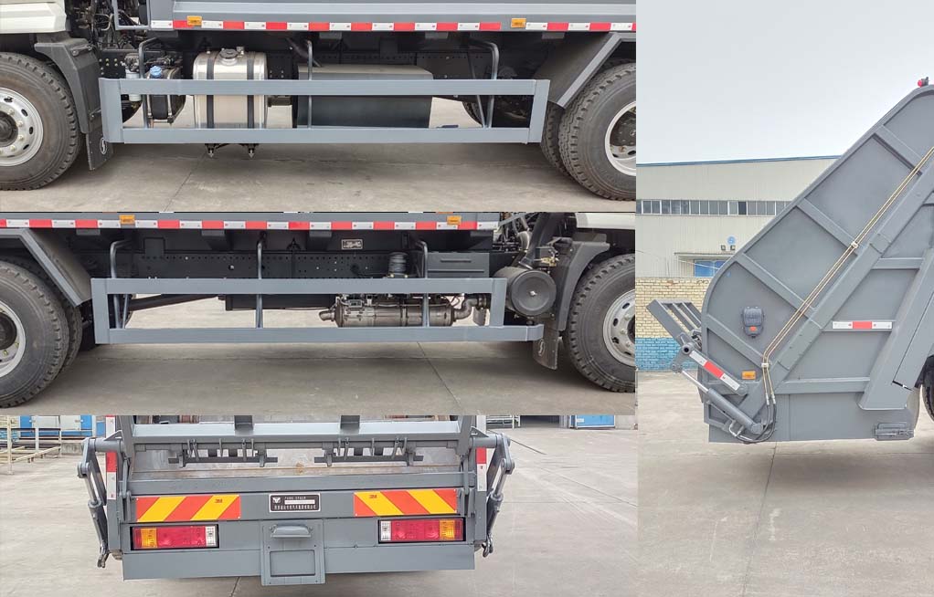 | 该车主要专用装置由垃圾箱体、垃圾装填器组成,用于垃圾的收集与清运.侧防护材料为Q235,螺栓连接;后防护由专用装置代替,下边缘离地高465mm.仅选用4500mm,4700mm轴距底盘.选装方形或弧形箱体,选装全密封盖装置,选装后部工作装置.选装爬梯.选装后翻转架样式.选装工作装置时外形长/轴距/后伸对应关系为(mm):①无上料装置:8700/4500/-,8900/4700/- ;②全密封斗装置和摆臂装置:8900/4500/200,9100/4700/200;③翻桶装置和翻斗装置:9090/4500/390,9290/4700/390.随底盘选装驾驶室.安装有具有卫星定位功能的行驶记录仪;发动机和油耗值(L/100km)对应关系:YCK05240-60/26.65,YCK05210-60/26.65,YCS06245-60A/26.66, YCS06245-60/26.66.ABS系统型号/生产厂家:ZQFB-V/西安正昌电子股份有限公司.选装直接供电式ETC车载装置. |