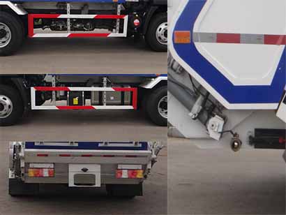 | 该车选装机械手翻转装置.外形尺寸长度/整备质量对应关系:A.6461mm/5706kg,6023kg.B.6695mm(含机械手后伸量234mm)/5876kg.C.6745mm(含机械手后伸量284mm)/6023kg.侧面防护装置所用材料材质:Q235B,连接方式为螺栓连接.因后部机械手翻转装置功能干涉,无后防护,翻转装置离地高度462mm。ABS系统型号为XH-KQ4S4M-E01,生产企业为广州市西合汽车电子装备有限公司;型号为CM4XL-4S/4M,生产企业为广州瑞立科密汽车电子股份有限公司。随底盘选装驾驶室,扩展防飞溅系统外观、后部侧罩、选装翻转装置外观。选装车辆左右侧结构布置,选装污水箱,选装后部警灯,整体拆卸式前门。可选装无前门结构。 |