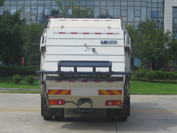 该车安装具有卫星定位功能的行驶记录仪器;可选装ETC车载装置;该车有3组装置:A(翻桶装置),B(无装置),C(翻斗装置)。各配置的整备质量(kg)/额定载质量(kg)/长(mm)/后悬(mm)/后伸(mm)/如下:配置A:10120/7680/8950/2700/300; 配置B:9830/7970/8470/2520/0; 配置C:10300/7500/8765/2520/295。侧防护装置的材料材质:Q235B,连接方式:螺栓连接;后部防护由专用工作装置代替,离地高490mm。以上3种装置均可选装铝合金材质侧防护。随底盘选装驾驶室前脸造型,随底盘装B6.2NS6B230发动机,对应油耗值(L/100km)为24.1。随底盘装有ABS,ABS型号/生产厂家:VIE ABS-II/浙江万安科技股份有限公司。该车装备有垃圾箱体,液压机构及垃圾装填器,用于将垃圾自行压实装入、转运和卸料功能。 |