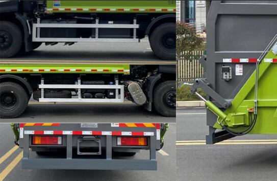 ABS型号/生产厂家:3631010-C2000/东科克诺尔商用车制动系统(十堰)有限公司,ABS 8/东科克诺尔商用车制动系统(十堰)有限公司,4460046450/采埃孚商用车系统(青岛)有限公司.发动机D6.7NS6B290、DDi75E350-60、DDi75E300-60的最大净功率为208kw,252kw,215kw.发动机对应的油耗值(L/100km)为:D6.7NS6B290/32.2;DDi75E350-60/32.2;DDi75E300-60/32.2.选装直接供电的ETC车载装置,安装具有卫星定位功能的行驶记录仪;随底盘选装驾驶室,选装箱体样式;仅采用4350+1350轴距改装.该车带翻桶装置,还可选装翻斗机构装置,无装料机构型装置;配置翻桶装置时,整车长为10340mm,后伸为300mm;配置翻斗机构装置时,整车长为10240mm,后伸为200mm;配置无装料机构型装置时,整车长为10040mm,无后伸。侧、后防护装置材料均为Q235B,后防护焊接连接,侧防护螺栓连接;后防护装置截面尺寸为140?0mm,离地高度400mm;该车专用装置为专用垃圾厢体、机械翻转机构、垃圾压缩机构;主要功能为城市生活垃圾的收集、处理以及装运。 |