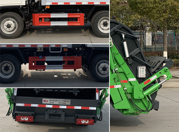 | 该车用于将垃圾自行压实装入、转运和卸料的专用作业汽车;选装无上料装置时,整车长(mm)/后伸(mm)对应关系为:5050/0;选装全密封机构和摆臂机构时,整车长(mm)/后伸(mm)对应关系为:5250/200;选装翻桶机构和三角斗机构时,整车长(mm)/后伸(mm)对应关系为:5380/330;侧防护材料为Q235,连接方式为螺栓连接,后防护由专用装置替代,离地高度(mm):400;ABS型号为CM4YL,生产厂家为广州瑞立科密汽车电子股份有限公司;发动机对应油耗值(L/100km)为:D20TCIF14/10.15;选装直接供电的ETC车载装置.仅采用2400轴距改装.选装不同外观;该车整备质量包含备胎,灭火器,随车工具.随底盘选装驾驶室 |
