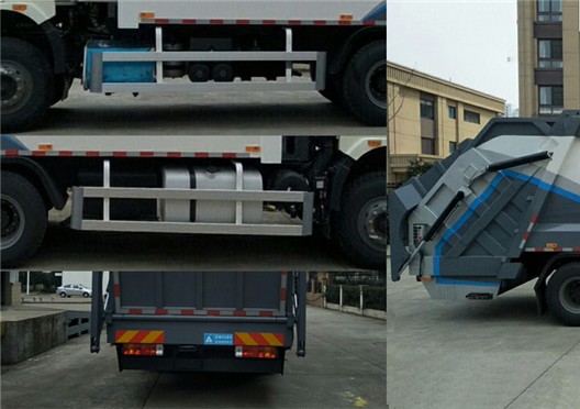 该车仅选用底盘轴距4350+1350mm.该车具有两种配置,配置A为无尾部垃圾装载装置,配置B为后簸箕垃圾装载装置.配置A时,车辆长10050mm,整备质量15250Kg;配置B时,车辆长10230mm,具有后伸180mm,整备质量15750Kg.随底盘选装前围和灯具,选装宽体保险杠,脚踏板.该车随底盘配置ABS,ABS系统生产厂家:长春瑞立科密汽车电子有限公司,型号:CM4XL.安装具有卫星定位功能的行驶记录仪.发动机CA6DK1-26E6,CA6DK1-28E6,CA6DK1-32E6对应油耗值分别为30.74 L/100km,30.74 L/100km,30.74L/100km.该车安装具有卫星定位功能的行驶记录仪.侧防材料铝合金,螺栓连接.后防护由车辆后部结构代替,离地高430mm.该车装备有垃圾箱体,液压装置及垃圾装填器,用于将垃圾自行压实装入,转运和卸料功能;该车随底盘选装驾驶室外门把手样式,翼子板;该车可选装ETC车载装置. |