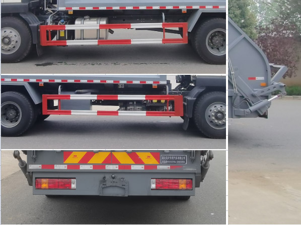 | 选装外观样式。采用4500mm,4700mm轴距底盘;该车主要专用装置由箱体,压缩系统组成,用于垃圾的收集与清运。侧防护采用Q235,螺栓连接;车辆后部为专用作业部位,车辆后部离地高500mm;ABS系统控制器生产企业/型号为威伯科(上海)管理有限公司/4460046300。发动机型号和油耗值对应关系(L/100km):MC07.27-60/25.93,WP4.6NQ220E61/26.73,MC05H.20-60/25.32,MC05H.23-60/25.32,MC05H.25-60/25.32,MC07.25-60/25.93,MC07.29-60/25.93,MC07H.29-60/25.93,WP6H270E61/26.47.车辆长/轴距/前悬/后悬/后伸的对应关系为:9050/4700/1430/2520/400,8850/4700/1430/2520/200,8650/4700/1430/2520/0,8850/4500/1430/2520/400,8650/4500/1430/2520/200,8450/4500/1430/2520/0。额定载质量和整备质量及驾驶室准乘人数一一对应。选装ETC车载装置。选装外观及爬梯样式。 |