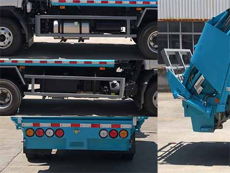 | 1.该车通过后上料机构,填料器,垃圾厢体进行垃圾收集装填及压缩作业;2.该车上料机构可选装A:无上料机构;B:翻桶机构1, 翻桶机构2, 翻桶机构3;C:翻斗机构;长度/轴距/后伸对应关系为(mm):6271/3365/0,6771/3365/500,6651/3365/380;选装箱体外形;3.侧面防护材质为Q235,与车架螺栓连接;后下部防护由专用装置替代,离地高度为490mm;4.发动机D30TCIF2油耗值为16.2(L/100km);5.ABS系统控制器型号:CM4XL-4S/4M,ABS系统控制器生产厂家:广州瑞立科密汽车电子股份有限公司,选装ABS系统型号/厂家为VIEABS-Ⅱ/浙江万安科技股份有限公司;6.选装裙边结构,整车宽2160mm,选装填料器后罩。 |