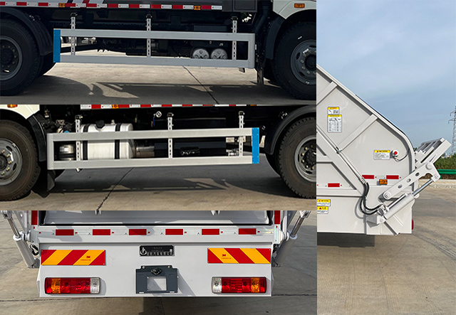 1、该车主要专用装置由箱体、压缩系统组成,用于垃圾的收集与清运。该车可选装方形或弧形箱体,选装全密封盖装置,选装后部工作装置,选装爬梯样式,选装工作装置时外形长/后伸对应关系为(mm):①无上料装置:8750/0;②全密封斗装置和摆臂装置:8950/200;③翻桶装置和翻斗装置:9150/400。仅采用4500mm轴距。2、侧防护采用铝合金,螺栓连接;后防护由专用装置替代,下边缘离地高:450mm。3、随底盘选装前围和前部灯具,选装宽体保险杠,脚踏板。选装翼子板,门把手,选装无"中国一汽"标识。ABS系统生产厂家:长春瑞立科密汽车电子有限公司,型号:CM4XL.随底盘装备限速装置,限速89km/h,安装具有卫星定位功能的行驶记录仪.该车型可选装ETC车载装置,采用的发动机与油耗值对应关系为(L/100Km):CA4DK1-22E6/25.6,CA4DK1-18E6/25.6,CA6DH1-24E6/26.92。 |