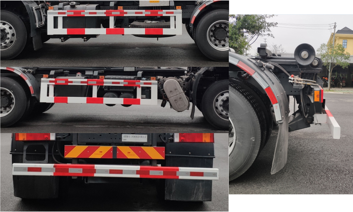 | 1.该车装备有液压拉臂,用于将装载垃圾的专用垃圾箱拖吊到本车上进行转运作业,实现垃圾箱拖吊转运和卸放功能;2.侧防护材料为Q235,采用螺栓连接.后防护材料为Q235,连接方式:用螺栓固定在车架后端,后部防护装置断面尺寸(宽赘?60?20(mm),后部防护离地高度:480(mm);3.ABS型号/生产厂家:3631010-C2000/东科克诺尔商用车制动系统(十堰)有限公司,ABS 8/东科克诺尔商用车制动系统(十堰)有限公司,4460046450/威伯科汽车控制系统(中国)有限公司;4.安装具有卫星定位功能的行驶记录仪,该车可选装车载ETC装置;5.驾驶室前角扰流板为选装件;选装驾驶室前面罩、前保险杠及前部灯具和后视镜,驾驶室顶部中间三个装饰灯为选装件,前雾灯为选装件,驾驶室侧窗选装树脂装饰板;随底盘选装进气管、储气筒安装位置及消声器外观;6.发动机型号/最大净功率(kw)/油耗值(L/100km):D6.7NS6B290/208/31.7,DDi75E350-60/252/31.7 |