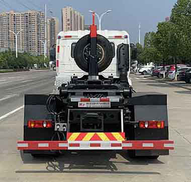 该车装备有液压拉臂,用于将装载垃圾的专用垃圾箱拖吊到本车上进行转运作业,实现垃圾箱拖吊转运和卸放功能,仅运输封闭式专用货箱;随底盘选装驾驶室;整车长(mm)/前悬(mm)/轴距(mm)/后悬(mm)的对应关系为7630/1430/4700/1500,7600/1400/4700/1500,7480/1430/4700/1350,7450/1400/4700/1350,7430/1430/4500/1500,7400/1400/4500/1500,7280/1430/4500/1350,7250/1400/4500/1350,6880/1430/3950/1500,6850/1400/3950/1500,6730/1430/3950/1350,6700/1400/3950/1350,6730/1430/3800/1500,6700/1400/3800/1500,6580/1430/3800/1350,6550/1400/3800/1350;侧防,后防采用Q235材质螺栓连接在大梁上,后防护截面尺寸(mm):140?0,离地高度(mm):450;发动机对应油耗值(L/100km)分别为:DDi50E190-60/23.9,D4.5NS6B190/24.4,D6.7NS6B230/23.7,B6.2NS6B210/23.8,B6.2NS6B230/23.8;ABS型号/生产厂家:3631010-C2000/东科克诺尔商用车制动系统(十堰)有限公司,ABS 8/东科克诺尔商用车制动系统(十堰)有限公司, 4460046450/威伯科汽车控制系统(中国)有限公司,J ABS/焦作博瑞克控制技术有限公司;选装不同外观;选装不同专用装置;选选阀门样式. |