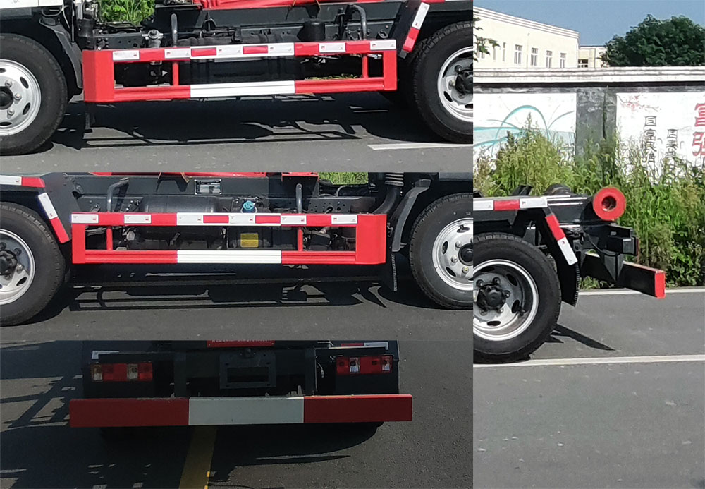 | ABS型号:VIE ABS-II,CM4YL;ABS生产企业:浙江万安科技股份有限公司,广州瑞立科密汽车电子股份有限公司;随底盘选装驾驶室;该车型可选装ETC车载装置;发动机型号/油耗值(L/100km)对应关系:Q23-95E60/11.46,Q23-115E60/11.40,Q23-110E60/11.46,Q23-132E60/11.35,CA4DB1-11E6/11.24,CA4DB1-12E6/11.24,CA4DB1-13E6/11.24,CA4DB1A13E6/11.41,D20TCIF11/11.49;侧、后防护材料均为Q235,侧防护采用螺栓连接,后下部防护采用焊接连接,后下部防护断面尺寸(mm):150?0,后下部防护离地高度(mm):370;专用功能及装置描述:该车主要用于垃圾转运,专用装置为勾臂;整备质量不含备胎、灭火器和随车工具;6.50R16 10PR轮胎仅用于采用1750(kg)前轴荷的底盘. |